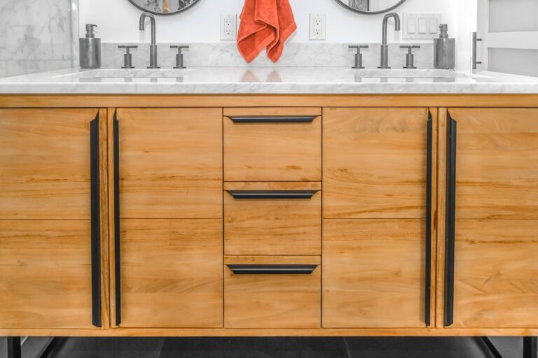 We design and install vanities that fit your space’s dimensions and storage needs. Choose from custom-built or pre-manufactured units with options for integrated lighting and mirrors.